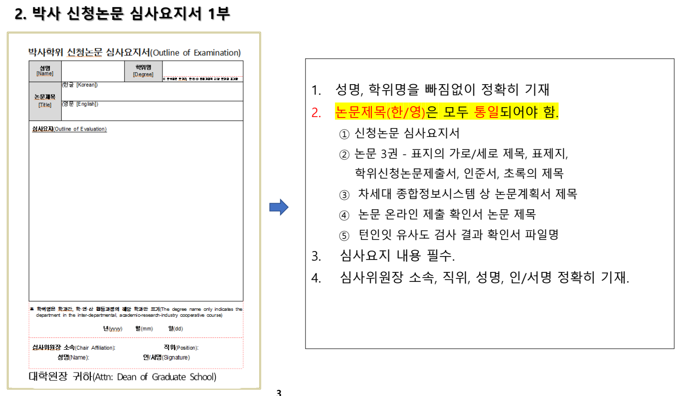 [1. 학위 신청 논문 심사결과표 1부. 2. 학위 신청 논문 심사요지서 1부.] 제출 요망.