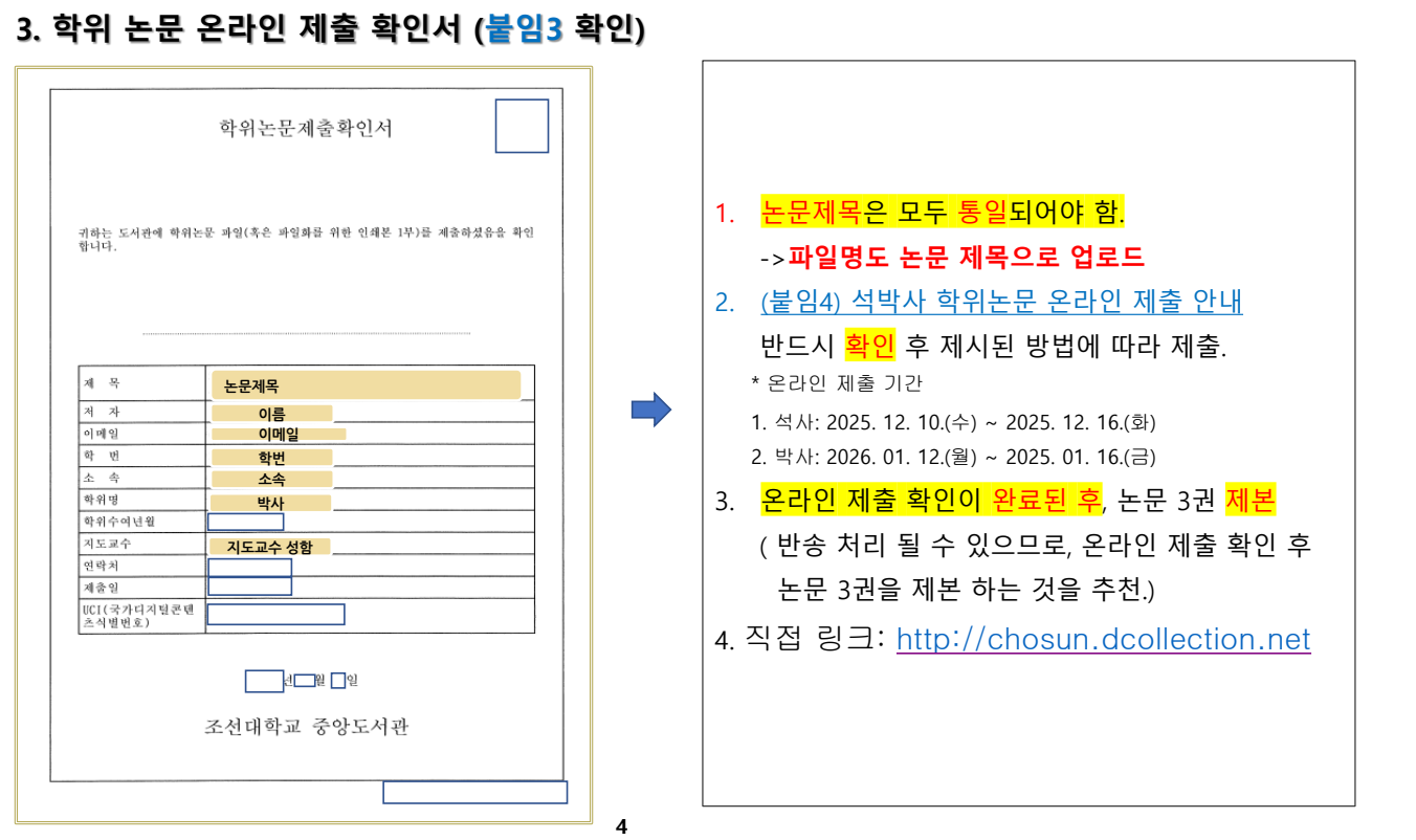 *학위 논문 온라인 제출 직접 링크: http://chosun.dcollection.net